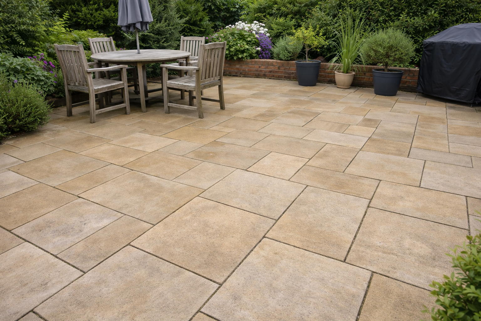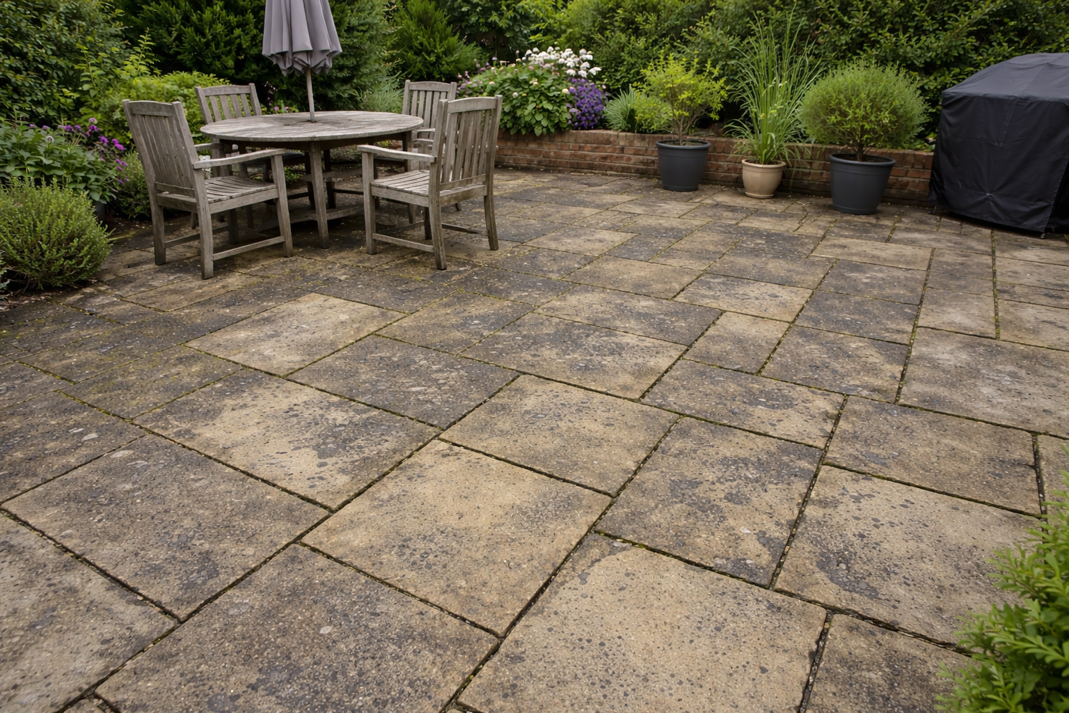 - Pressure cleaning for patio slabs and hard surfaces